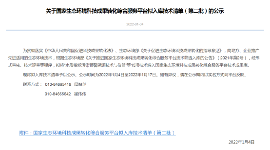 近日,國家生態環境科技成果轉化綜合服務平臺公布第二批入庫技術清單,三友環保“高濃度復合粉末載體生物流化床技術(HPB技術)”成功入選。
