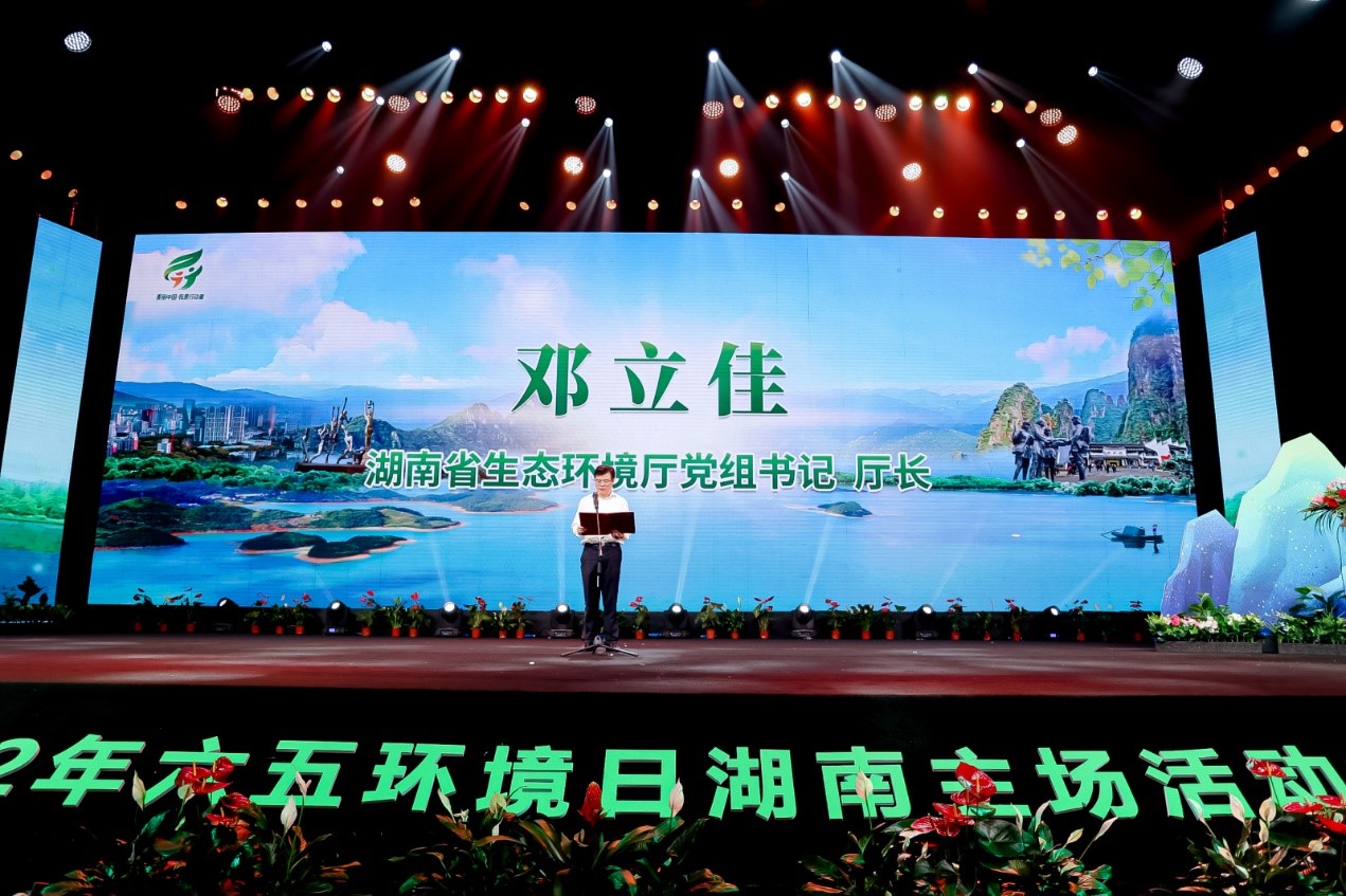 (圖為湖南省生態環境廳黨組書記、廳長鄧立佳作主旨演講)