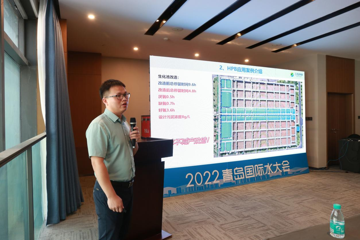 在分享中,三友環(huán)保技術(shù)總監(jiān)巢真以HPB技術(shù)作為重點(diǎn),詳細(xì)地為觀眾展示了城鎮(zhèn)污水處理廠提標(biāo)擴(kuò)容過程中,HPB技術(shù)所帶來的改變,并結(jié)合數(shù)據(jù)論證與案例分析,給污水處理提供了更為簡單、高效、低耗的解決方式。